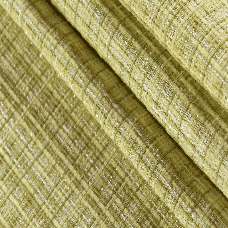 Мягкая, пластичная и объемная ткань, с разреженной и рельефной вывязанной структурой. Буклированный твид в стиле Шанель буквально соткан из различных по толщине и текстуре нитей, образующих рисунок в виде клетки. В плетение добавлена блестящая люрексная нить. Твид идеально подходит для пошива платьев, юбок, жакетов, легких пальто, эффектных бомберов и курток.