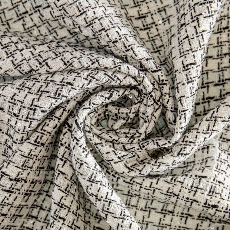 Твид шанель 1120-341-025-0002 молочно-черный с пайетками