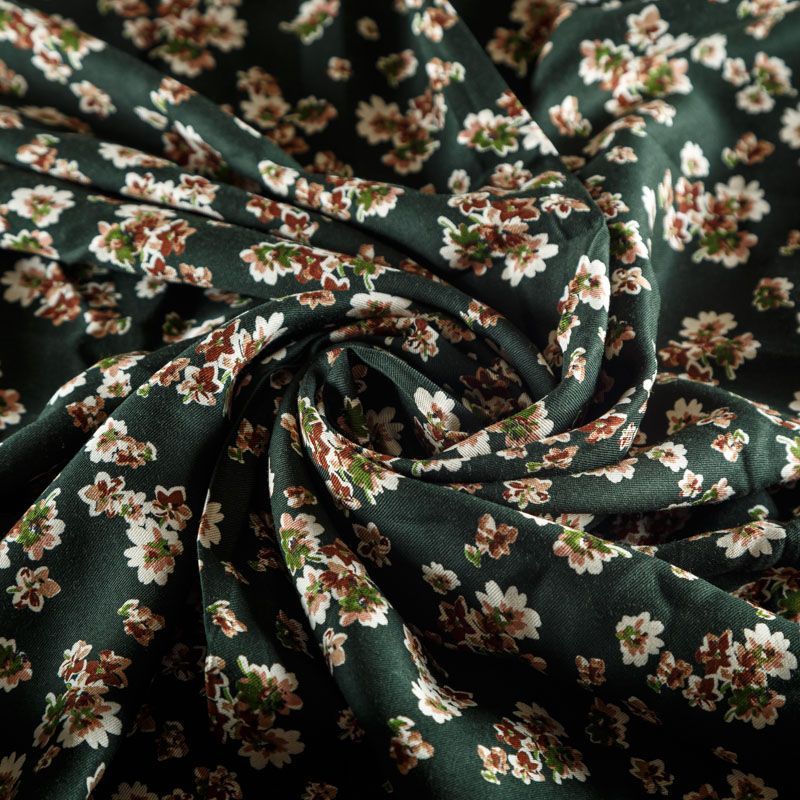 Твил-штапель 069-04610 темно-зеленый принтованный в Казани