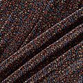 Плотная и мягкая ткань черного цвета с ярким мелкоцветом, имеет саржевое плетение и характерный диагональный рубчик на поверхности. Отлично сохраняет форму, не сильно мнется и не деформируется в процессе эксплуатации. Красиво ложится в складки, поэтому прекрасно подойдет на длинные драпированные юбки и платья, на свободные брюки или шорты, топы.
