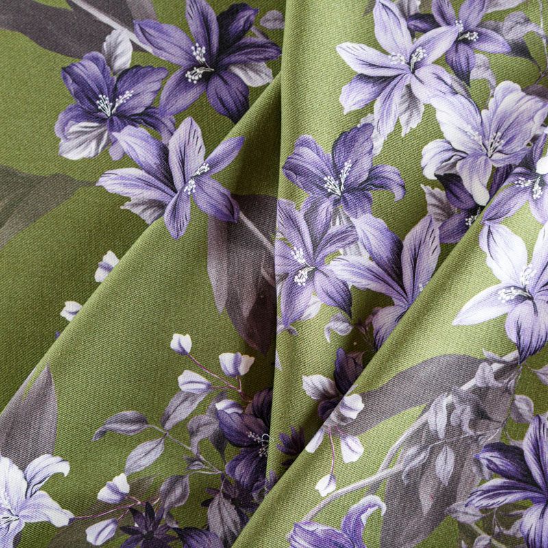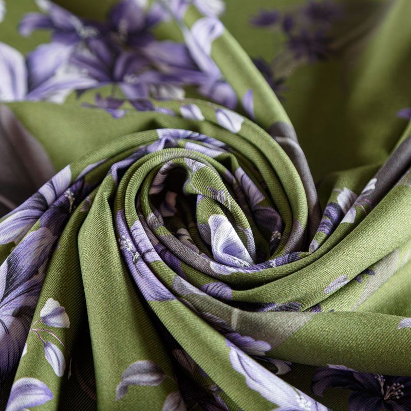 Твил-штапель 069-06477 зеленый хаки принтованный в Казани