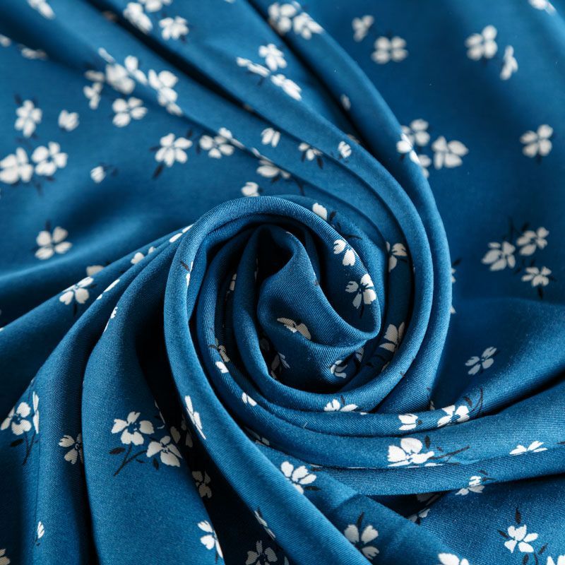 Плотная и мягкая ткань, имеет саржевое плетение и характерный диагональный рубчик на поверхности. Отлично сохраняет форму, не сильно мнется и не деформируется в процессе эксплуатации.  Красиво ложится в складки, поэтому прекрасно подойдет на длинные драпированные юбки и платья, на свободные брюки или шорты, блузки, рубашки или топы.