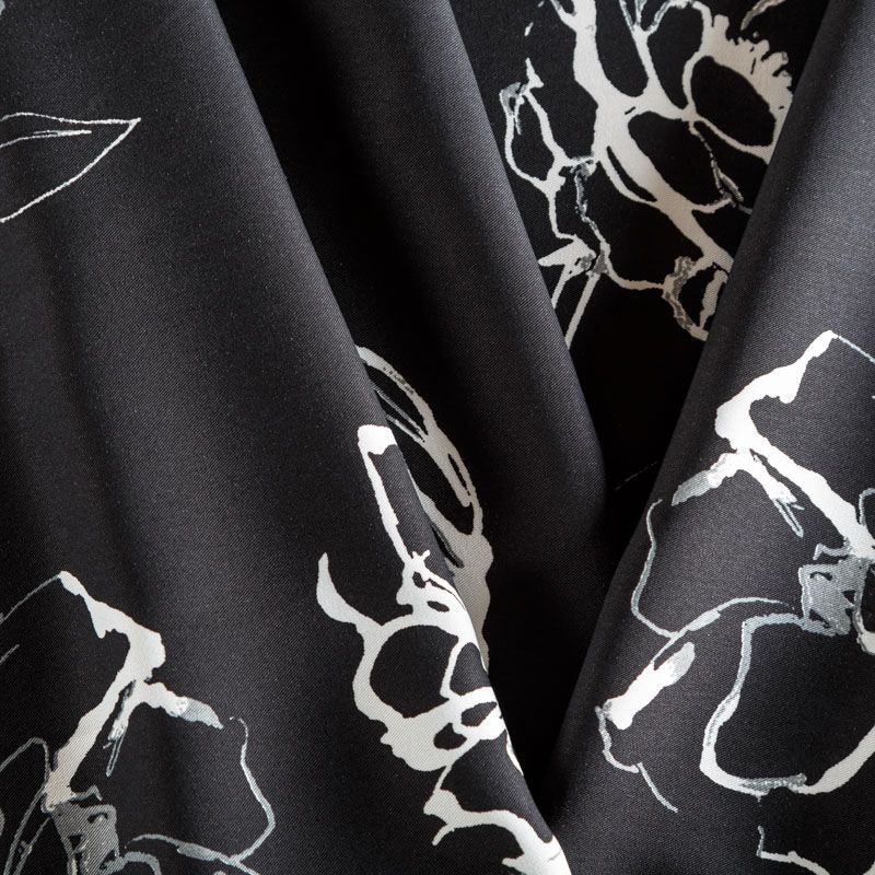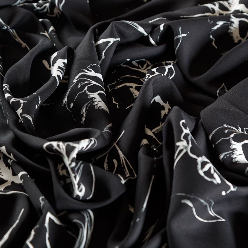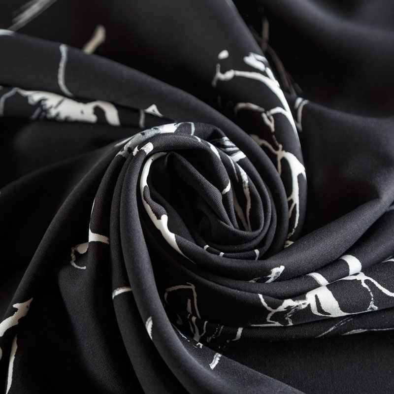 Плотная и мягкая ткань, имеет саржевое плетение и характерный диагональный рубчик на поверхности. Отлично сохраняет форму, не сильно мнется и не деформируется в процессе эксплуатации.  Красиво ложится в складки, поэтому прекрасно подойдет на длинные драпированные юбки и платья, на свободные брюки или шорты, блузки, рубашки или топы.