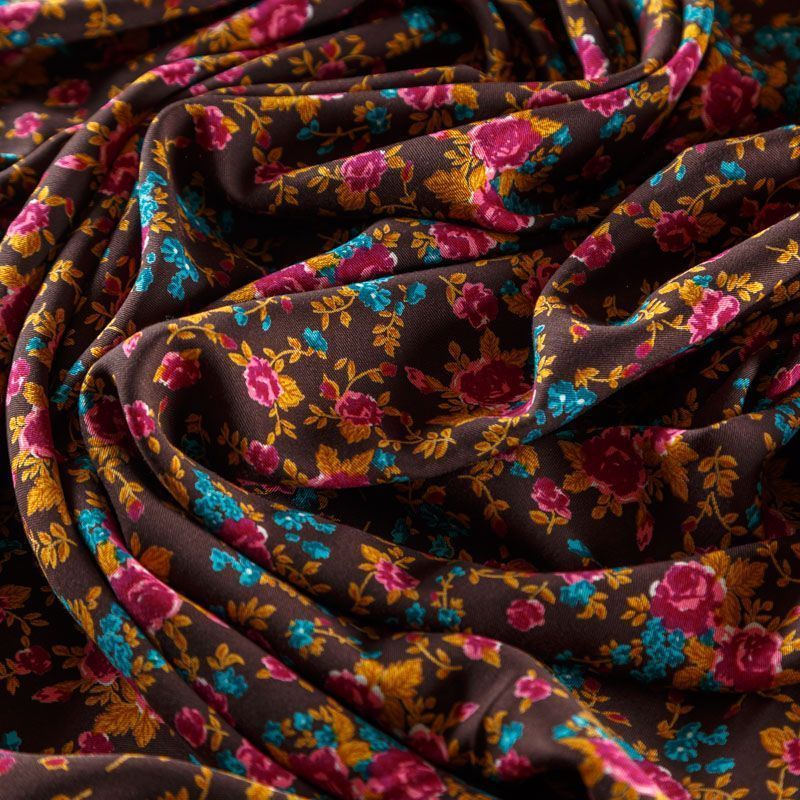 Твил-штапель 069-08289 коричневый принтованный в Казани
