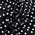 Плотная и мягкая ткань, имеет саржеве плетение и характерный диагональный рубчик на поверхности. Отлично сохраняет форму, не сильно мнется и не деформируется в процессе эксплуатации. Красиво ложиться в складки, поэтому прекрасно подойдет на длинные драпированные юбки и платья, на свободные брюки или шорты, топы. Размер гороха 1см