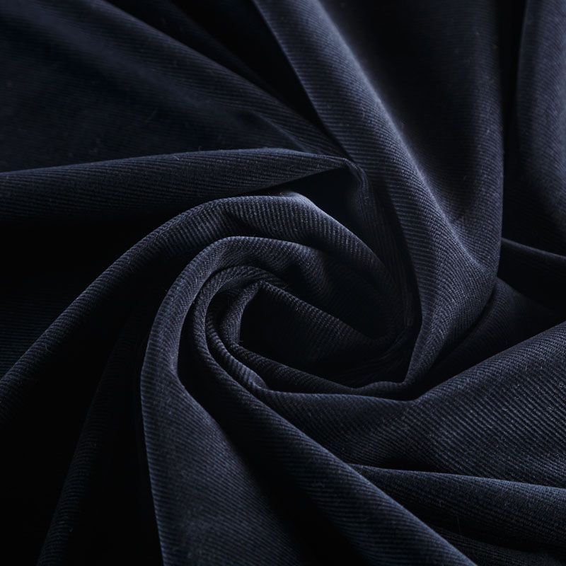 Итальянский костюмно-плательный микровельвет из хлопка в черном цвете. Очень приятный тактильно, поверхность бархатистая в тонкий рубчик, тянется за счет эластана в составе, не просвечивает. Подойдет для пошива костюма, жакета, платья, сарафана, юбки или брюк.