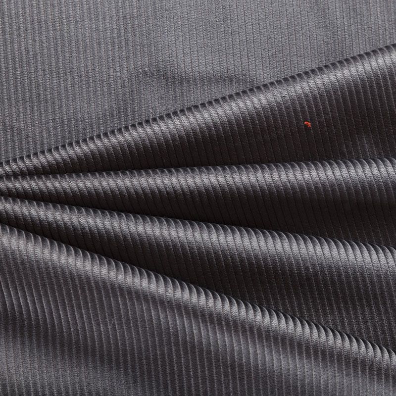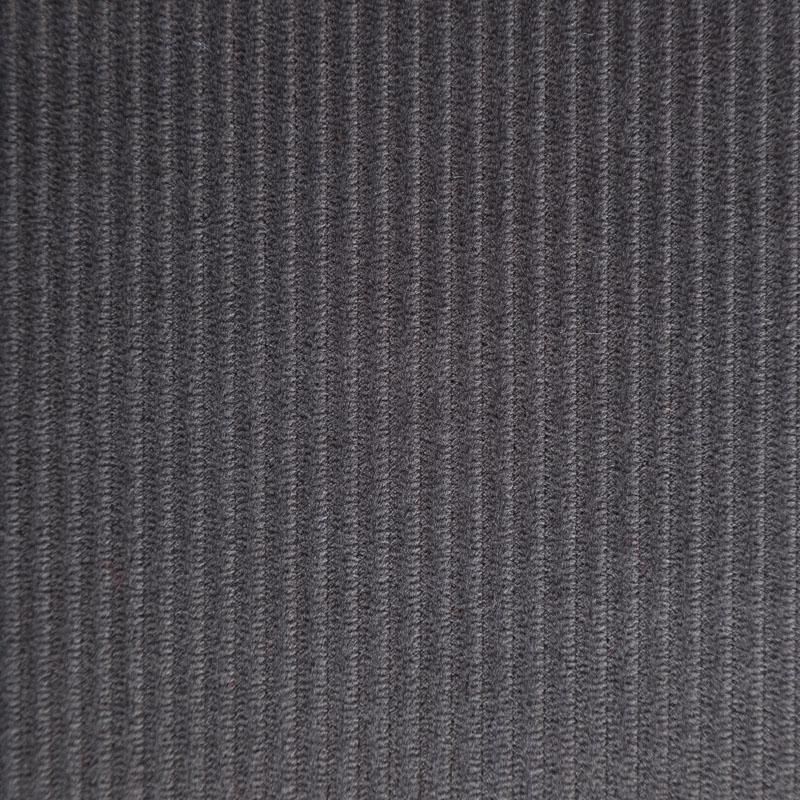 Итальянский хлопковый вельвет костюмно-плательной плотности темно-серого оттенка. Ткань имеет матовую фактурную поверхность в рубчик средней ширины, ворс короткий, мягкий и приятный на ощупь. Тянется за счет эластана в составе, хорошо драпируется и держит форму. Прекрасный вариант для пошива костюма, юбки, широких брюк, шорт, комбинезона, жакета, куртки или тренча.