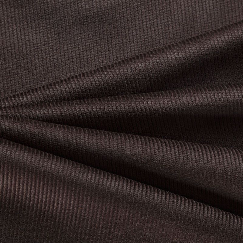 Итальянский хлопковый вельвет костюмно-плательной плотности шоколадного оттенка. Ткань имеет матовую фактурную поверхность в тонкий рубчик, ворс короткий, мягкий и приятный на ощупь. Хорошо драпируется и держит форму. Прекрасный вариант для пошива костюма, юбки, широких брюк, шорт, комбинезона, жакета, куртки или тренча.