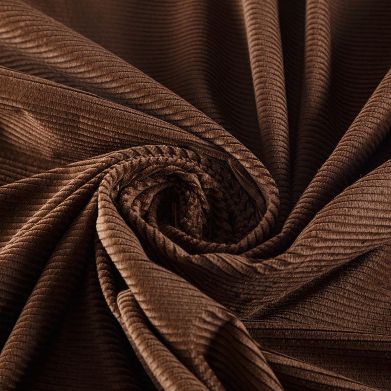 Итальянский хлопковый вельвет костюмно-плательной плотности коричневого оттенка. Ткань имеет матовую фактурную поверхность в средний по ширине рубчик, ворс короткий, мягкий и приятный на ощупь. Хорошо драпируется и держит форму. Прекрасный вариант для пошива костюма, юбки, широких брюк, шорт, комбинезона, жакета, куртки или тренча.