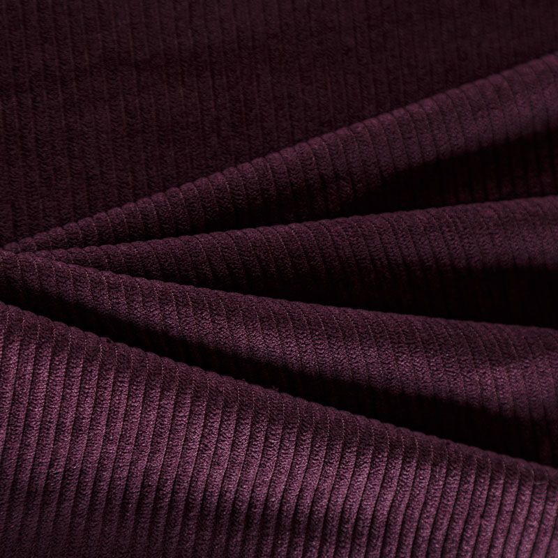 Плательно-костюмный вельвет средней плотности, но удивительно мягкий с матовым блеском и бархатистой поверхностью. За счет вытравки ворса лицевая сторона фактурная, в рубчик средней толщины. Ткань очень пластичная, хорошо и мягко драпируется, не мнется. Прекрасно подходит для пошива костюмов, жакетов, платьев, юбок, брюк, шорт, а также  для изготовления даже детской одежды.
