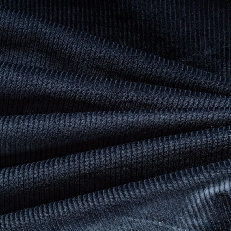 Итальянский костюмно-плательный вельвет из хлопка в темно-синем оттенке. Очень приятный тактильно, поверхность бархатистая в средний рубчик, немного тянется, не просвечивает. Подойдет для пошива костюма, жакета, платья, сарафана, юбки или брюк.