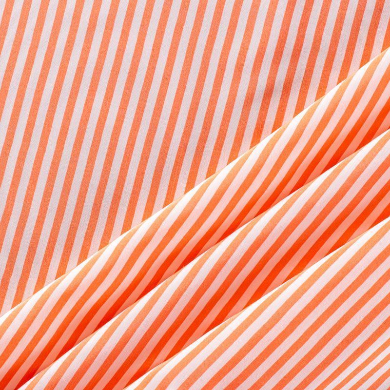 Плательно-рубашечная итальянская вискоза с принтом в горизонтальную полоску оранжевого цвета. Натуральная, дышащая ткань, очень приятная к телу, отлично драпируется, струится, не просвечивает. Хорошо подойдет для пошива платьев, рубашек, платьев-рубашек, блуз, юбок, брюк, летних костюмов, пыльников, детской одежды.