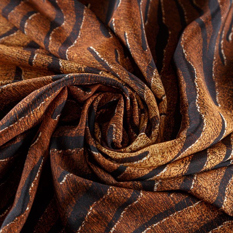 Итальянская плательно-блузочная вискоза с анималистическим мотивом на коричневом фоне. Ткань очень пластичная, отлично драпируется и струится, мягкая и приятная на ощупь, не просвечивает. Прекрасно подойдет для пошива платья, сарафана, рубашки, топа, блузки, юбки, летнего костюма.