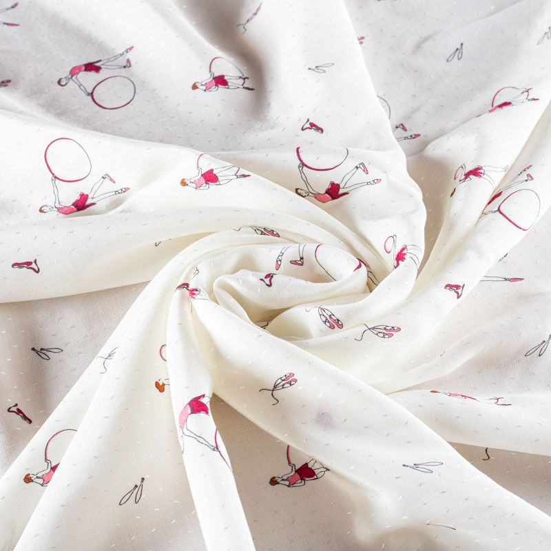 Итальянская жаккардовая вискоза молочного оттенка с мелким принтом . Ткань тонкая, слегка просвечивает, отлично драпируется и струится, приятная на ощупь. Прекрасно подойдет для пошива платья, сарафана, топа, блузки, юбки, пижамного костюма.