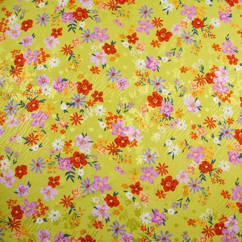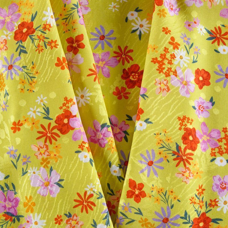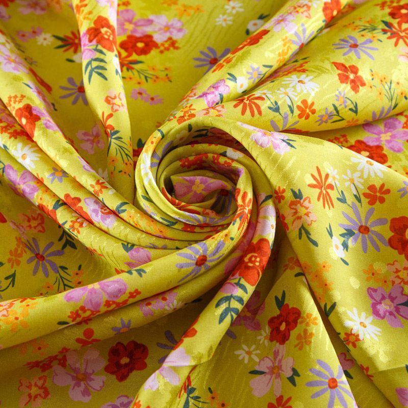 Итальянская жаккардовая вискоза плательно-блузочной плотности. Мелкий цветочный принт на ярком фоне будет актуален в любом изделии: блузка, рубашка, платье, летний сарафан, костюм в пижамном стиле.