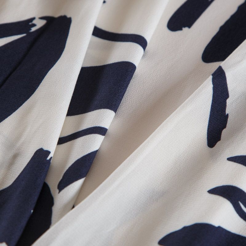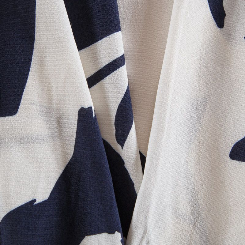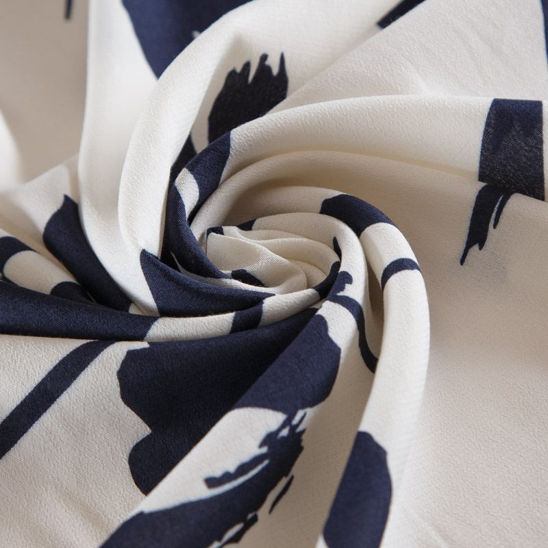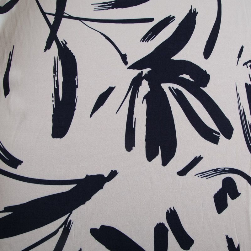 Итальянская креповая вискоза плательно-блузочной плотности из коллекции Hugo Boss в молочном оттенке с абстрактным контрастным принтом. Ткань имеет шероховатую, зернистую фактуру, мягкая и пластичная, слегка прослеживается силуэт. Не тянется, но пружинит за счет плетения. Подойдет для пошива блузки, платья, юбки, брюк свободного кроя.