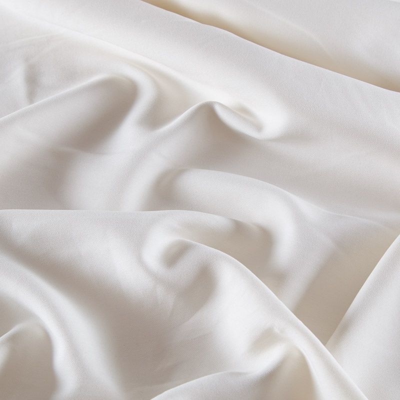 Качественная плотная костюмно-плательная вискоза в молочном оттенке. Ткань с диагональным плетением, имеет небольшой благородный матовый блеск, тяжелая, не тянется, прекрасно драпируется и держит форму. Идеально подойдет для пошива костюмов, брюк-карго, джоггеров, платьев, юбок, шорт, пиджаков, комбинезонов, летних парок и тренчей.