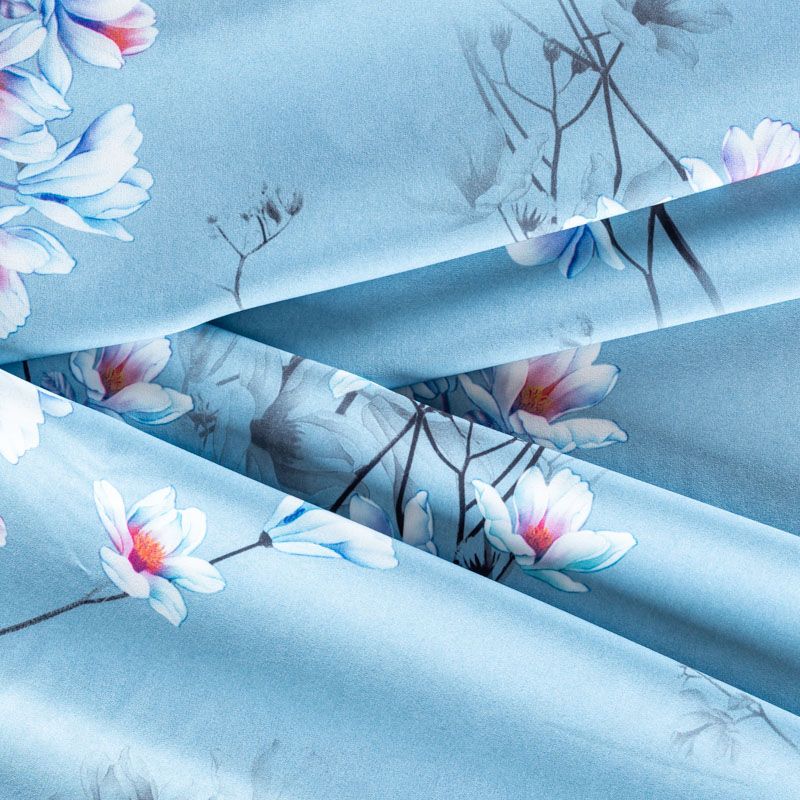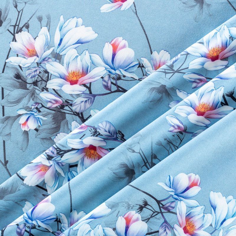 Это элегантная струящаяся ткань, которая превосходно драпируется, всегда изящно выглядит и остается легкой и воздушной,  имеет высокую прочность и большую износоустойчивость. Поверхность ткани матовая, гладкая и ровная, очень приятная на ощупь. Используется для пошива блуз, юбок, платьев, сарафанов, широких брюк.