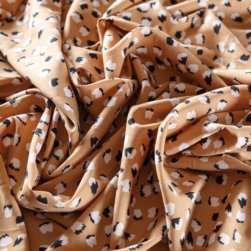 Легкая набивная ткань имеет высокую прочность, большую износоустойчивость. Материал упругий, мягкий, тянется за счет эластана в составе, хорошо драпируется, образует струящиеся складки. Идеально подойдет для пошива блуз, юбок, платьев, сарафанов.