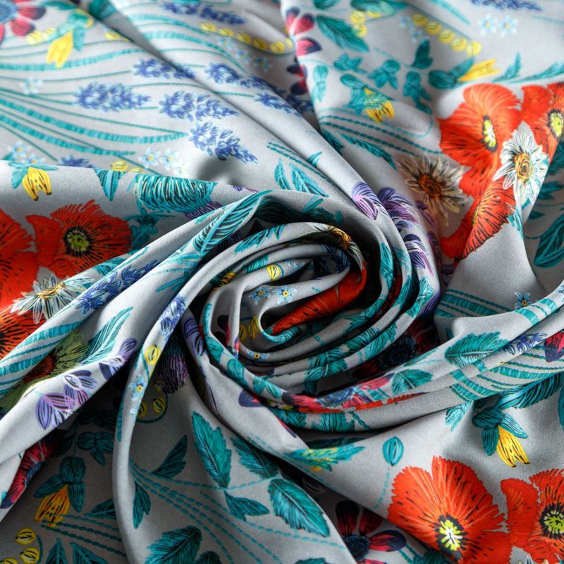 Легкая набивная ткань с цветочным принтом имеет высокую прочность, большую износоустойчивость. Ткань упругая, мягкая и хорошо драпируется, тянется за счет эластана в составе, образует струящиеся складки. Идеально подойдет для пошива блуз, юбок, платьев, сарафанов.