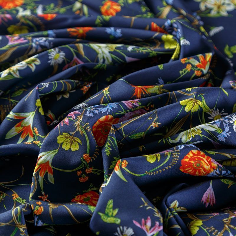 Это элегантная струящаяся ткань, которая превосходно драпируется, всегда изящно выглядит и остается легкой и воздушной,  имеет высокую прочность и большую износоустойчивость. Поверхность ткани матовая, гладкая и ровная, очень приятная на ощупь. Используется для пошива блуз, юбок, платьев, сарафанов, широких брюк.