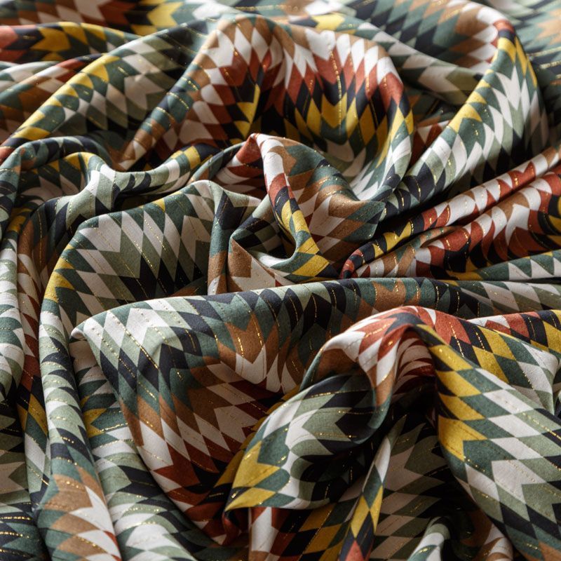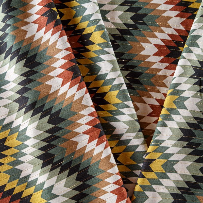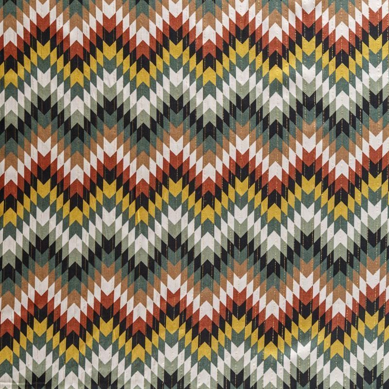 Итальянская плательно-блузочная вискоза с этническим мотивом декорирована тонкой люрексовой нитью. Ткань очень пластичная, отлично драпируется и струится, мягкая и приятная на ощупь, немного просвечивает. Прекрасно подойдет для пошива платья, топа, блузки, юбки.