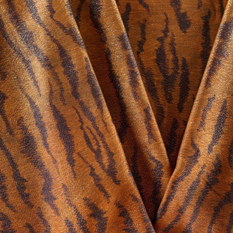 Итальянская плательно-блузочная вискоза с анималистическим принтом. Яркий, искрящийся акцет ткани придает вплетенная в волокна люрексовая нить. Ткань очень пластичная, отлично драпируется и струится, мягкая и приятная на ощупь, немного просвечивает. Прекрасно подойдет для пошива платья, топа, блузки, юбки, комбинезона, накидки.