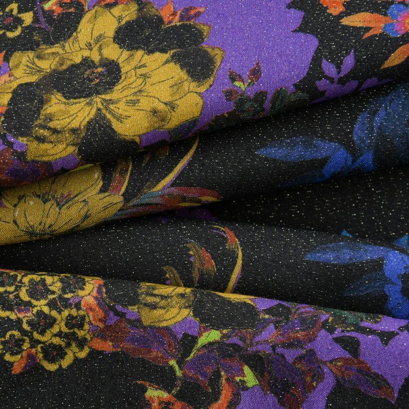 Вискоза с люрексом 009-12075 черный принтованный в Казани