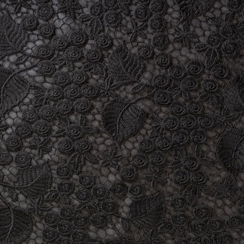 Очень эффектная вышивка на сетчатной основе черного цвета с мелкой ячейкой, мягкая и пластичная. Вышивка с флористическим орнаментом в тон основе, плотная, расположена по всем полотну. Ткань приятная к телу, не колется, не цепляется. Идеальна для эффектных вечерних нарядов и для повседневного образа в виде платья-футляра, топа, блузки, летнего жакета, кардигана, брюк или шорт. Требуется подклад.