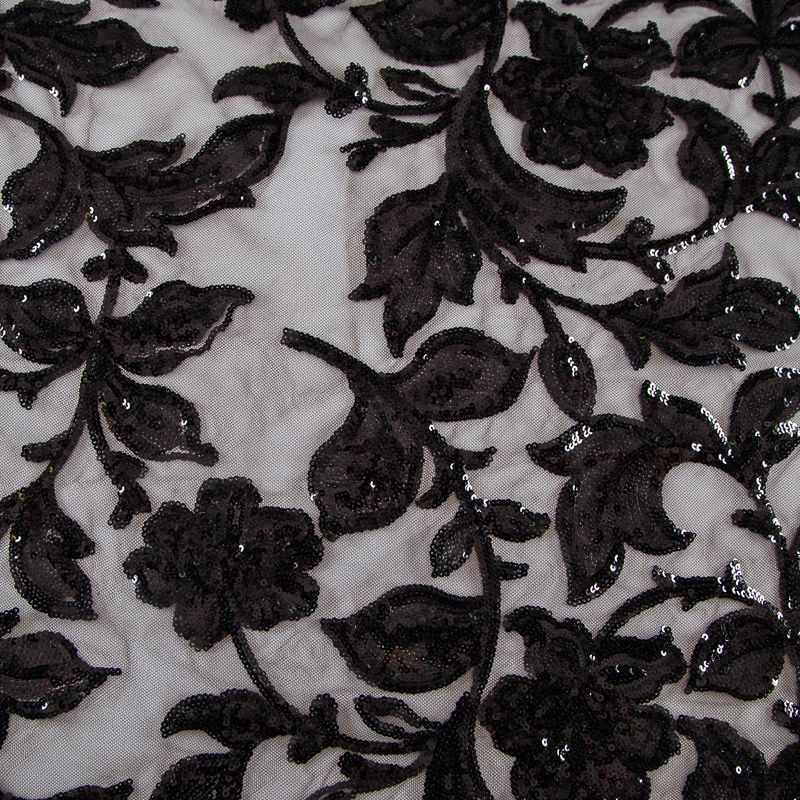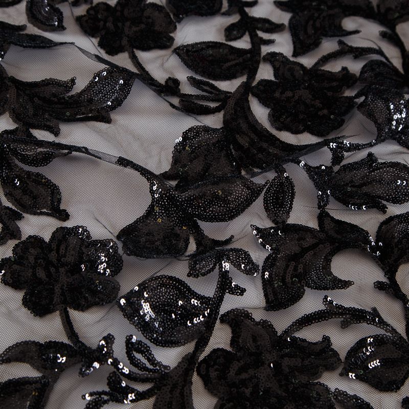 Вышивка с пайетками на сетке Armani 050-19126 черный в Казани
