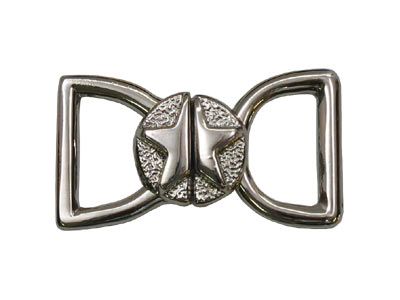 Декоративная металлическая застёжка состоит из 2-х частей, которые при закрывании образуют круг, внутри которого находится звезда. Для застёгивания детали вставляются одна в другую. Имеются отверстия для фиксации застёжки на изделии лентой шириной 10 мм. Используется для соединения деталей, а также украшения женского нижнего белья, купальников, одежды, сумок и т.д. Изготовлена из качественного сплава металлов, имеет блестящую поверхность, покрыта защитным слоем, который дает возможность изделию не ржаветь. При значительном повреждении защитного слоя ржавение возможно.