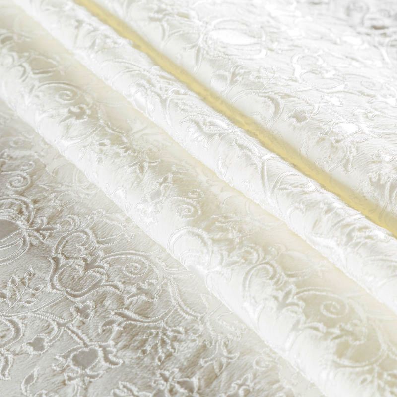 Итальянский жаккард молочного оттенка с изящным цветочным орнаметом. Ткань мягкая и пластичная, держит форму, хорошо драпируется. Повехность фактурная, матовая. Подойдет для создания вечерних  и свадебных платьев, нарядных костюмов, жакетов, юбок, корсетов, шорт.