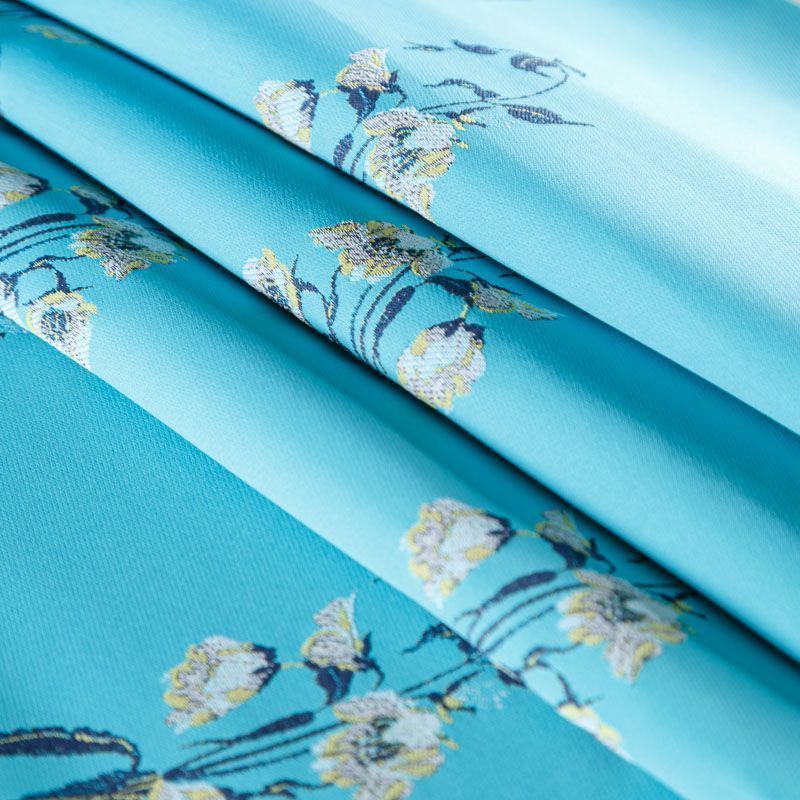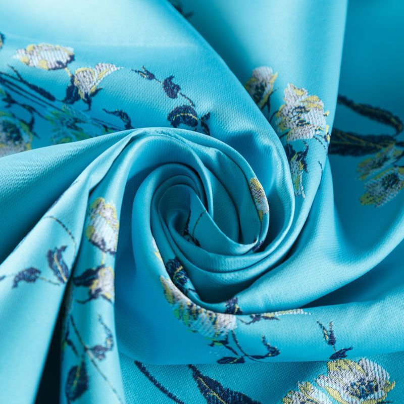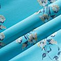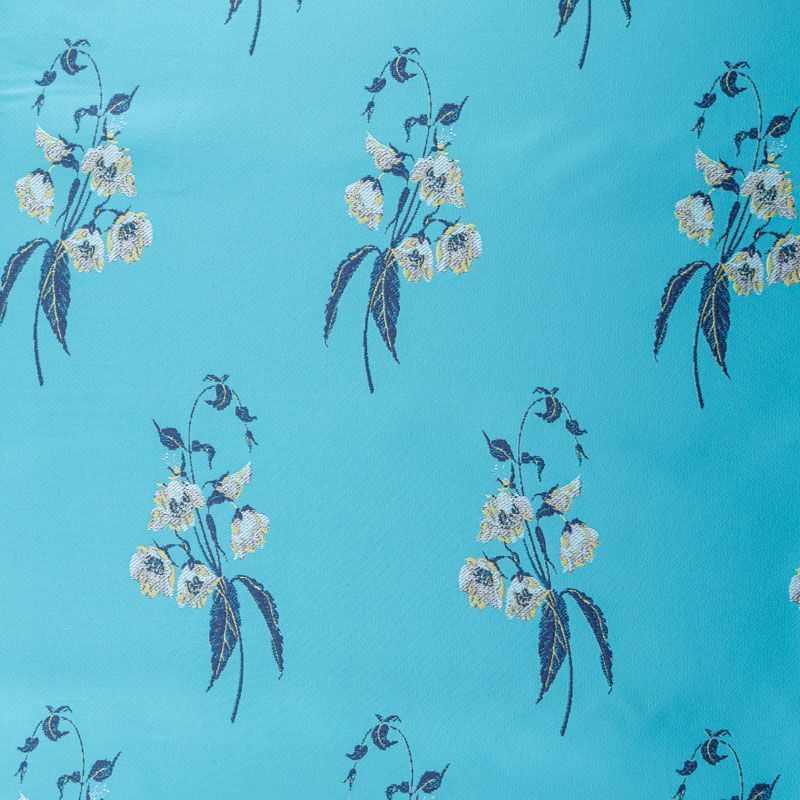 Итальянский жаккард в голубом оттенке с цветочным дизайном. Ткань легкая, но плотная, поверхность матовая и гладкая, хорошо драпируется и держит форму, не тянется, не просвечивает. Подойдет для пошива нарядных вечерних костюмов, платьев-футляров, жакетов, топов, летних пальто, бомберов, юбок или шорт.