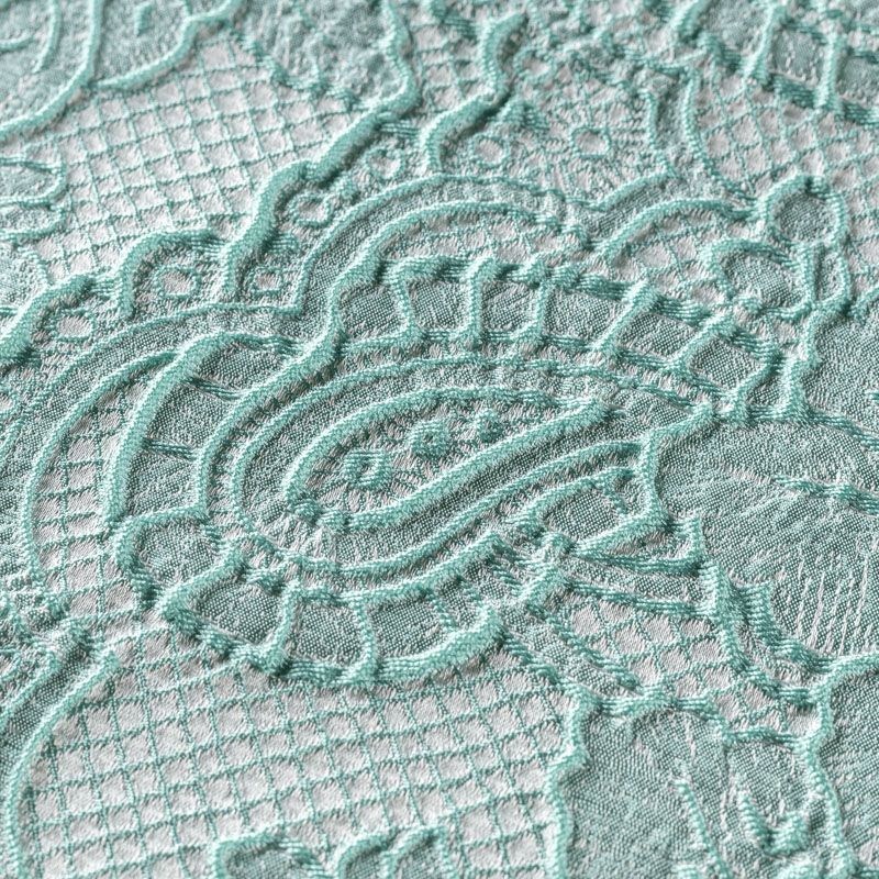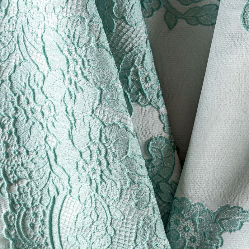 Итальянский атласный жаккард с нежным дизайном пейсли и цветов в мятных оттенках. Ткань легкая, поверхность фактурная со сдержанным блеском, хорошо драпируется, не тянется и не просвечивает. Рисунок сосредоточен вдоль кромки, поэтому жаккард на изделие набирается объемом. Подойдет для пошива нарядных вечерних костюмов, платьев-футляров или стиле Dior, жакетов, топов, летних пальто, бомберов, юбок или шорт.