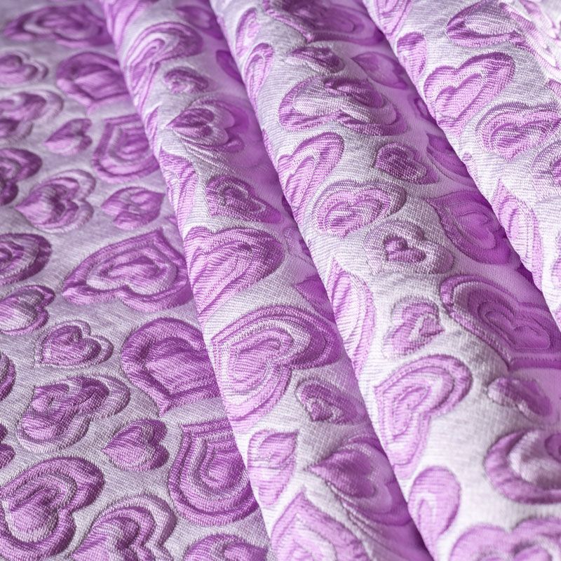 Итальянский жаккард с нежным и романтичным 3D дизайном из маленьких сердечек в сочетании холодного розового и сиреневого оттенков - очень стильный и оригинальный. Ткань легкая, поверхность со сдержанным блеском объемная и фактурная, хорошо драпируется, не тянется и не просвечивает. Подойдет для пошива нарядных вечерних костюмов, платьев-футляров или стиле Dior, жакетов, топов, летних пальто, юбок или шорт.