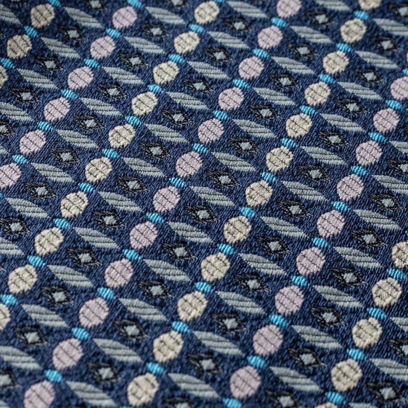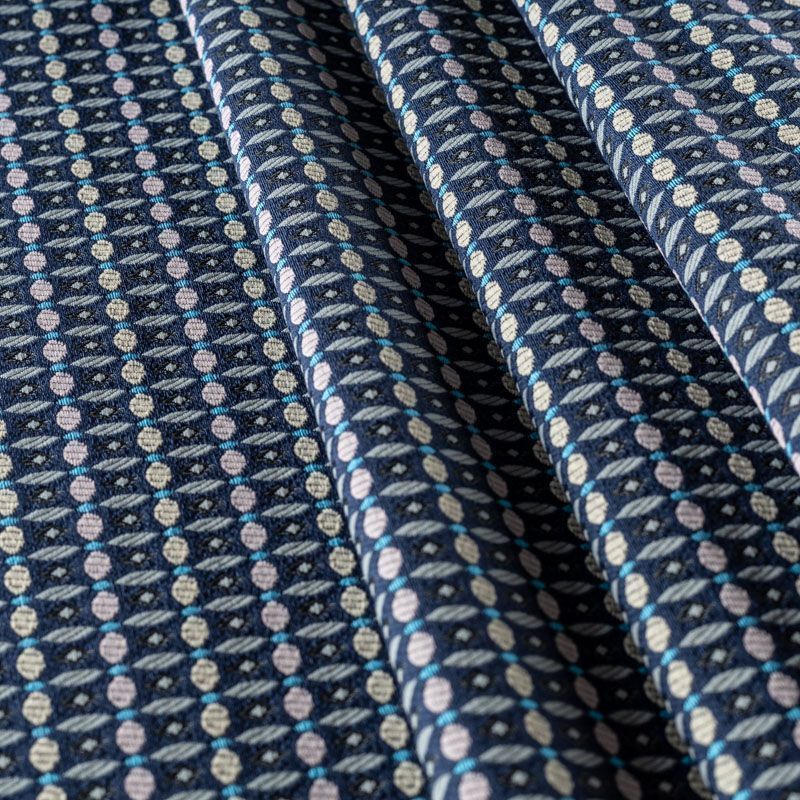 Мягкий хлопковый жаккард в серо-синей цветовой гамме с мелким абстрактным узором. Ткань пластичная, непрозрачная, приятная на ощупь, тянется за счет эластана в составе, форму не держит, но хорошо драпируется красивыми складками. Будет комфортна для пошива костюма, женственного платья, юбки или брюк.