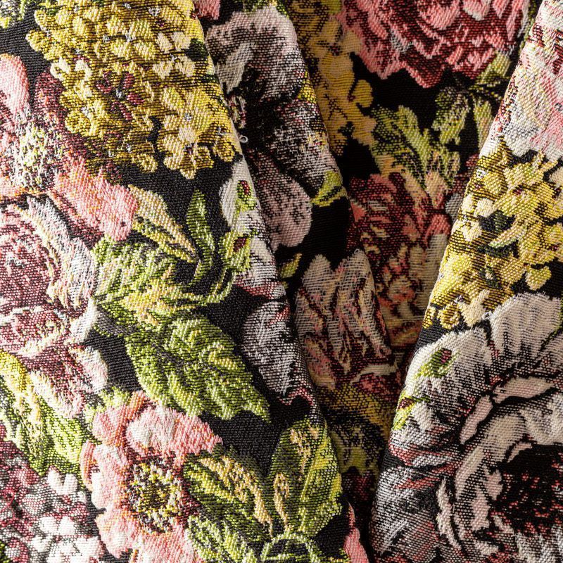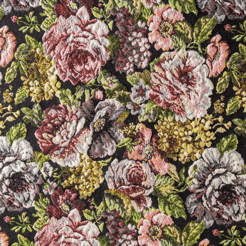 Итальянский пальтовый жаккард с добавлением шерсти черного цвета с пестрым цветочным узором, который создает оригинальный объемный эффект. Фактура ткани напоминает тканое полотно, ткань плотная, практичная и прочная. Она хорошо держит форму. Отлично подойдёт для пошива утепленного или легкого пальто, жилета, бомбера, жакета, юбки.