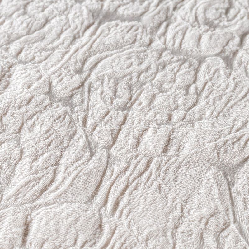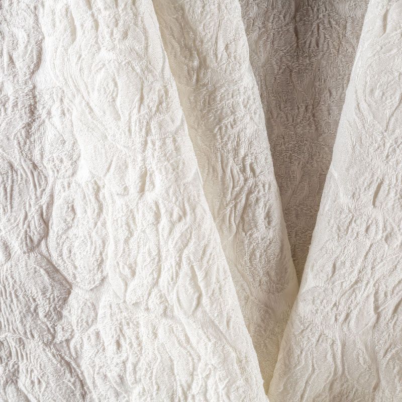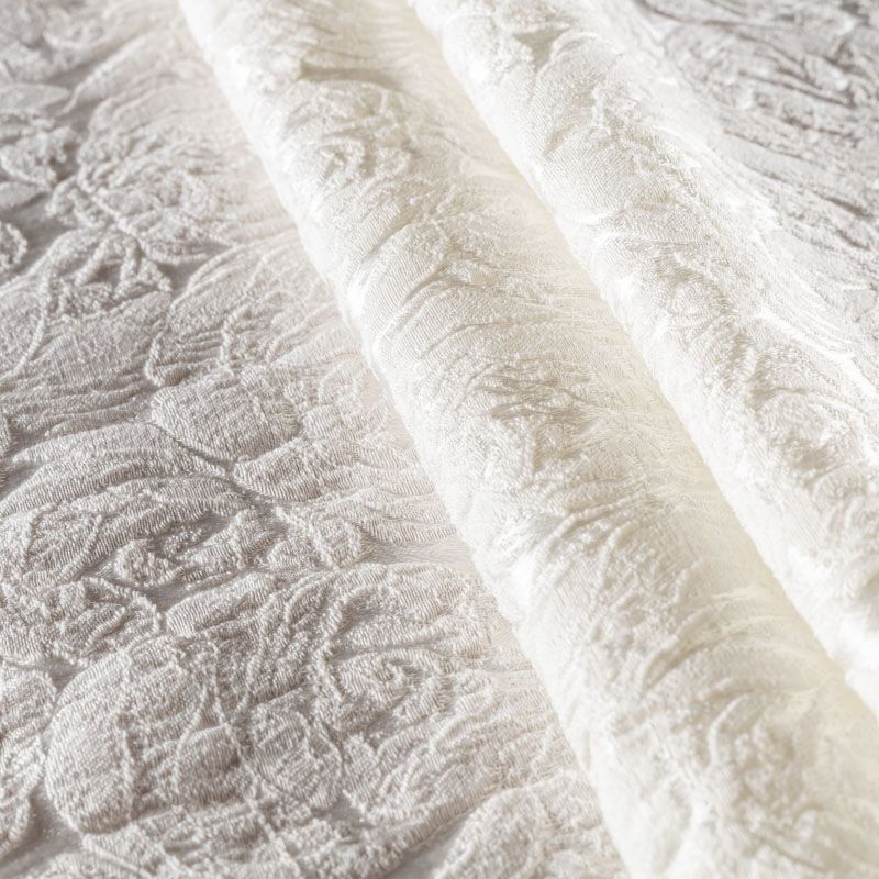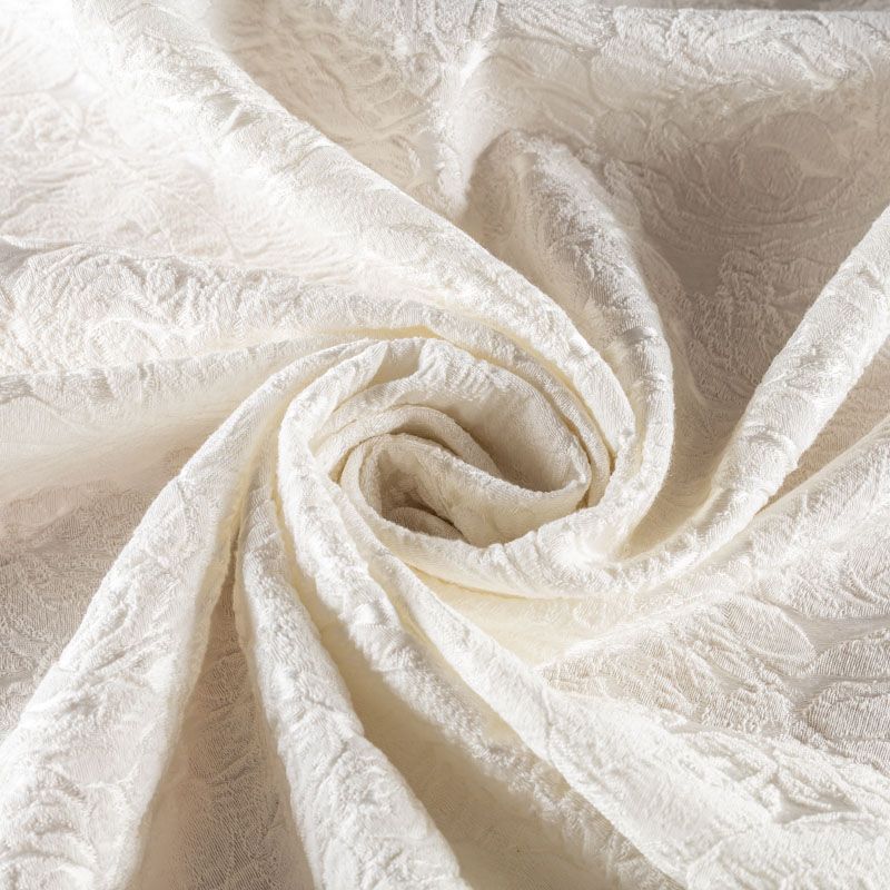 Итальянский жаккард с нежным и романтичным дизайном из фактурных роз жемчужного оттенка. Ткань легкая, но плотная, поверхность со сдержанным блеском объемная и текстурная, хорошо драпируется и держит форму, не много тянется, не просвечивает. Подойдет для пошива нарядных вечерних костюмов, платьев-футляров в стиле Dior, жакетов, топов, летних пальто, бомберов, юбок или шорт.