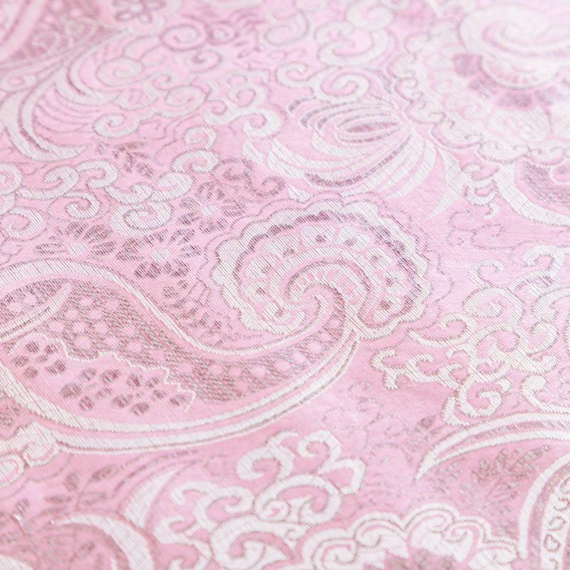 Парчевый жаккард плотного переплетения с декоративной поверхностью, с орнаментом пейсли из блестящих нитей. Ткань легкая, отлично драпируется, держит форму, отличается прочностью, долговечностью, износостойкостью и простотой в уходе, не смотря на свою высокую декоративность. Нарядность ткани придает серебристая люрексовая нить. Подходит для пошива юбок, платьев, топов, сценических костюмов.