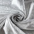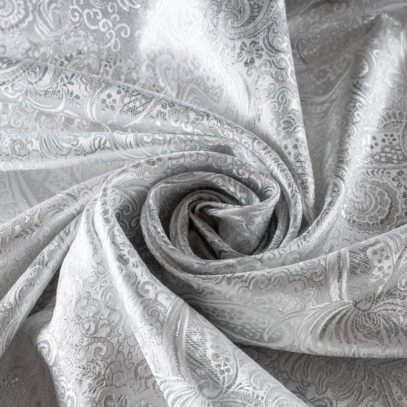 Насыщенная ткань плотного переплетения с декоративной поверхностью, покрытая сложным орнаментом из блестящих нитей. Ткань легкая, отлично драпируется, держит форму, отличается прочностью, долговечностью, износостойкостью и простотой в уходе, не смотря на свою высокую декоративность. Нарядность ткани придает золотая люрексовая нить. Подходит для пошива юбок, платьев, топов, сценических костюмов.